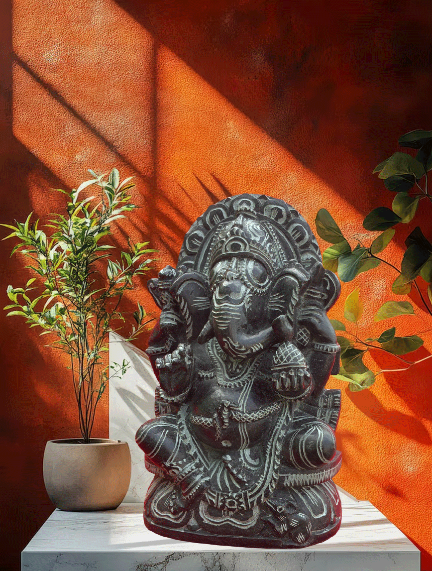 Black stone - Beautiful 6-Inch Ganesh Murti in Black Stone for Pooja and Decoration ( 6 Inch )