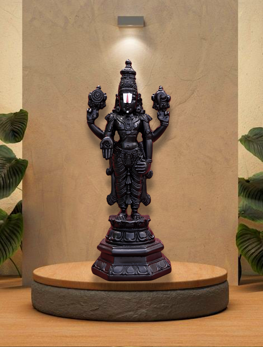 Lord Balaji- Black Granite dust lord Balaji. Perfect for Spiritual atmosphere Worship, Home décor and Gifting. ( 15 Inch )