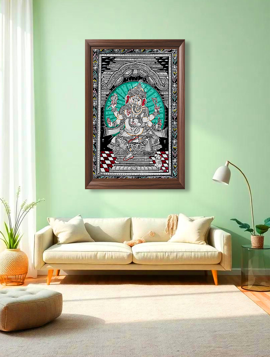 Lord Ganesh inside Temple-Divine Patachitra Wall Décor. WITHOUT FRAME ( 12 x 18 Inch) Type-1