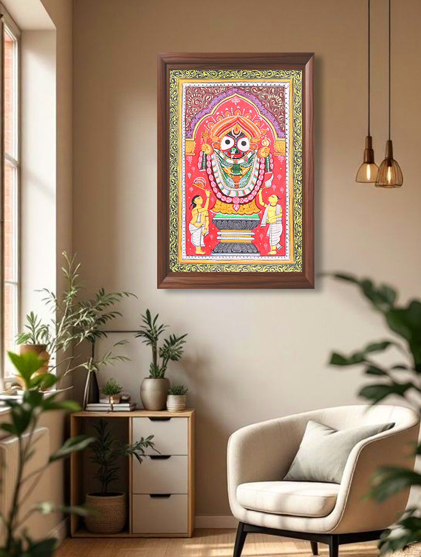Lord Jagannath i inside Temple-Divine Patachitra Wall Décor. WITHOUT FRAME ( 12 x 18 Inch)