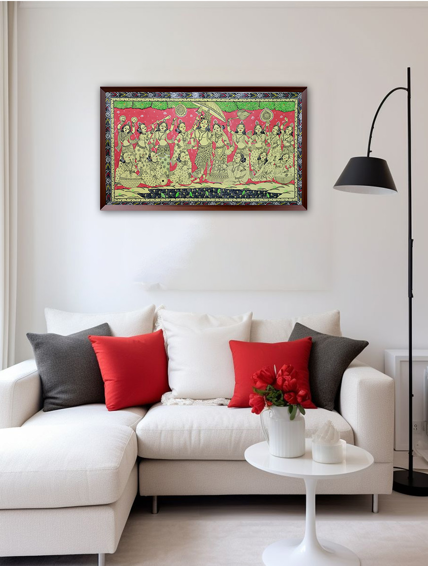 Lord Shiva and Mata Parvati- Marriage Ceremony of Shiva-Parvati - Divine Patachitra Wall Décor. WITHOUT FRAME (40 x 24 Inch)