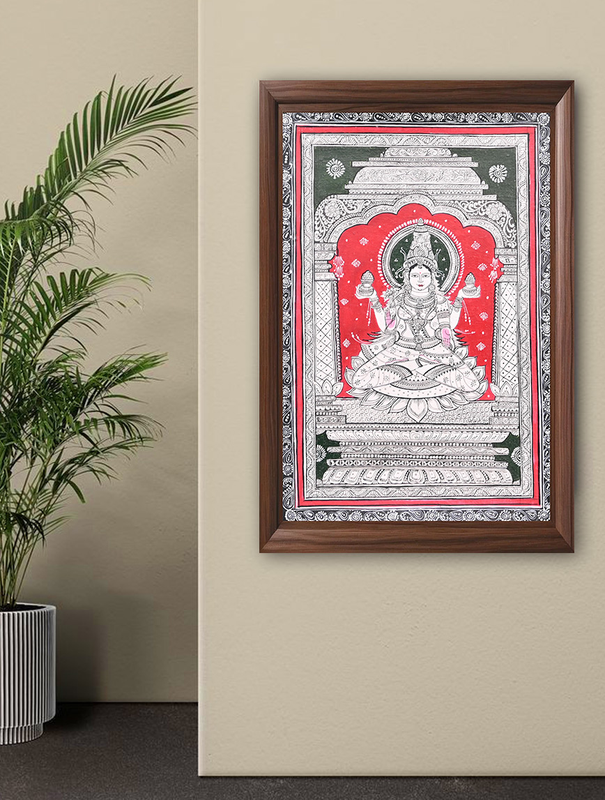 Mata Laxmi in side Temple-Divine Patachitra Wall Décor. WITHOUT FRAME ( 12 x 18 Inch)