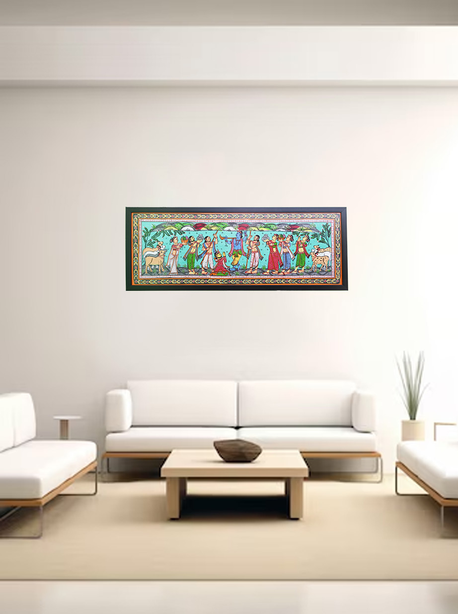Patachitra Sri Krishna Leela (Giri Gobardhan Mountain) Wall décor with waterproof ( 42" x 15" )