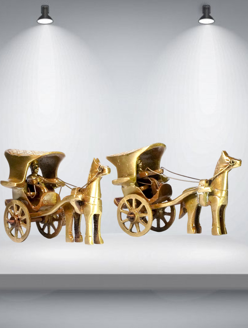Single Bull Solid Brass Bullock Cart with Hood. Set of-2 ( W- 2.5, L- 3.5, H- 2 Inch)
